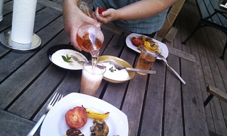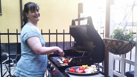 Länge pratades det om dåligt, regnigt midsommarväder, men där jag var var det fint i går. Lite svalt, men fint. De flesta jag känner hade rest bort, och jag ville bara ha en enkel midsommar, inte resa någonstans och inte arrangera något stort, men ändå uppmärksamma dagen. Kompromissen blev grillning med Lena W här på gården, med föreningens mafiosogrill. Kyckling, halloumi, potatis och grönsaker, en dragon- och citrontimjansås och en raitainspirerad myntasås (klart man ska utnyttja sin lilla kryddträdgård). Brownieartad chokladkaka med cashewnötter till efterrätt. Så ska en midsommar firas. Jordgubbar hade i och för sig varit trevligt, men sill och sådant klarar man sig utan.