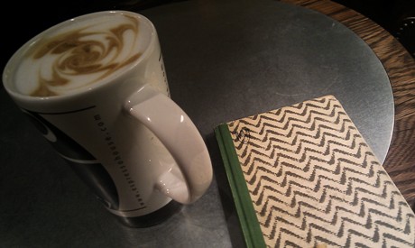 Nya Espresso House på Sveavägen har loggan i den nya, mildare färgskalan, uteborden är mer Paris än New York och insidan har något slags ranch/jaktstuga/safarilodge-tema, med jordfärger och en gigantisk buffel utstickande från väggen. Musiken var lite för hög för att det skulle gå att koncentrera sig på 50-talspoesin jag hade med mig, men som tur var kom det lite sena grattis-sms och andra meddelanden, så jag hade hela tiden alternativ sysselsättning.