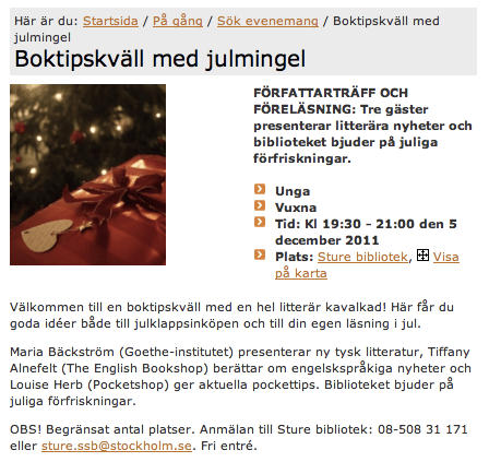 Vi har bjudit in tre av våra stora favoriter till Sture bibliotek – anmäl dig bums! Måndagen 5 december, kl. 19.30. (Observera att julklappen på bilden inte har med programmet att göra. Den fick jag av min mor för ett par jular sedan.)