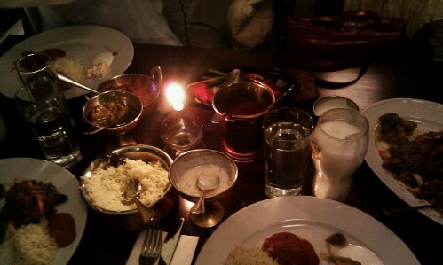 Och självklart åt vi indiskt, på Karishma, en kort promenad från Martinas lägenhet. Vi delade på tre rätter i vanlig ordning och svängde oss med de originalnamn vi kunde på de olika rätterna i menyn. Gott och mättande. Många såser. Jag älskar sås.