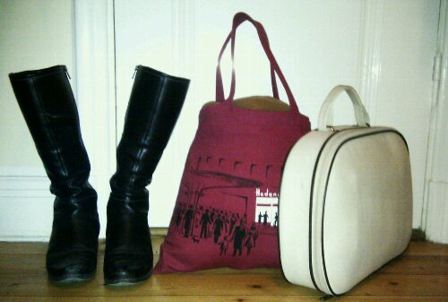 Resa lätt. Det var ju bara en övernattning, och Martina stod för det mesta av själva sovutrustningen, men jag blev ändå positivt överraskad av hur bra packningskomprimeringen gick. Tygkassen från Hedengrens och Myrorna-väskan (en korsning mellan en gammaldags resväska och en portfölj) räckte till min stora necessär, ett par ombyten, datorn, läsning och alla handväskprylar som alltid är med. Till råga på allt råkade vi hamna på en Monki med väldigt generös rea, och även mina reafynd (två tröjor, en sjal och en täckjacka) gick ner.