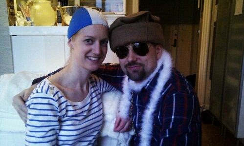 När jag på senaste onsdagssamlingen fick frågan om man skulle ta med sig något svarade jag nej, men, sa jag av någon anledning, man fick gärna klä ut sig om man ville. Två tog mig på orden, Lisette och Erik, som visar upp sig här.