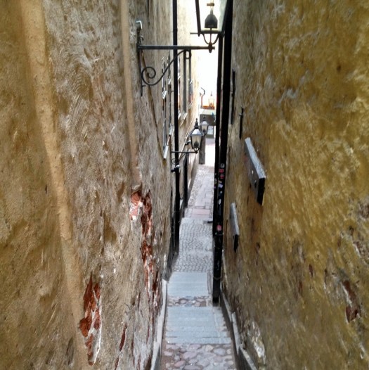 För första gången sedan någon gång i våras var Mårten Trotzigs gränd – närmaste vägen mellan Gamla stans bibliotek och Järntorget – fri från turister vars kameror man är i vägen för när man försöker ta sig upp eller ner. Nu var här öde, och jag gjorde som turisterma – halade upp kameran.