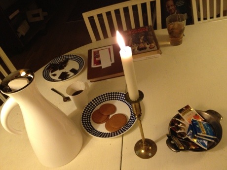 Invigning av Gamla stans biblioteks nya termoskanna på kvällens läsecirkel.