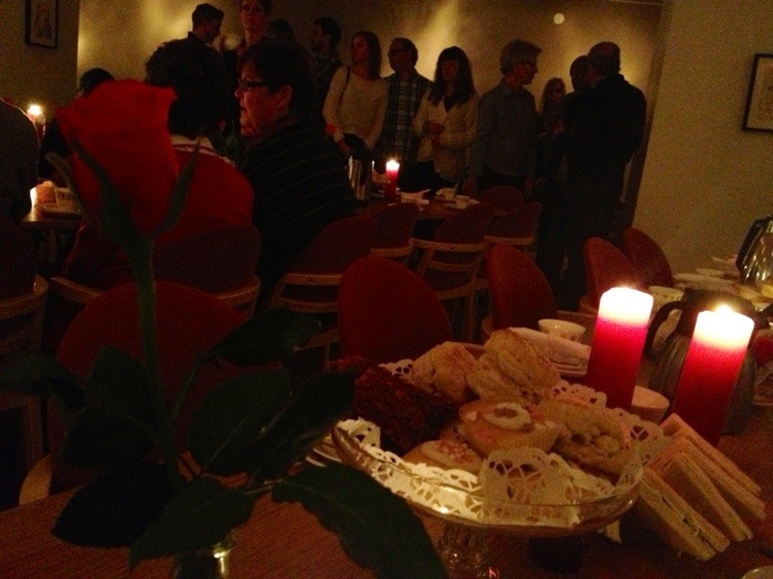 Klockan två stod tre långbord dukade med små trekantssandwiches, scones, kakor och te, som alternativ till den ledarfrukost Korskyrkan brukar bjuda in till, och gästtalare var Tim Humphrey, kyrkoherde i St Barnabas Church i London. Undervisningen handlade om att Gud har gett oss förmågor och personligheter som alla kan användas till samma goda ändamål i församlingen, men på helt olika och kontrasterande sätt. Inga nyheter egentligen, men ändå fick det mig att haja till. Det finns alltid outnyttjad potential att upptäcka hos sig själv och andra. Jag kan ha fått syn på sådan.
