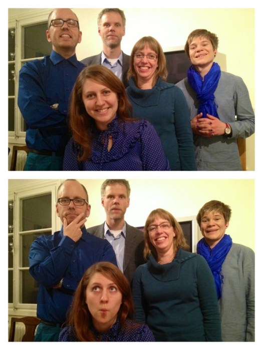 Jag och mina blå vänner testar en nynedladdad self-timer-app.