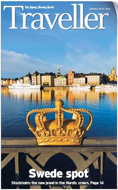 På de två PressDisplay-skärmarna på Sturebibblan brukar jag roa mig med att ta upp antingen DN eller Svenskan på den ena och på den andra söka fram någon intressant engelskspråkig tidning, och gärna en helgbilaga som rör kultur, livsstil eller resor. Vanligtvis är de stora engelska tidningarna och deras bilagor mest lockande, men den här gången fick jag för mig att titta på det gedigna utbudet australiensiska tidningar, och jag fastnade för Sydney Morning Herald och Traveller-bilagan, där kronan på bilden var så märkligt bekant.