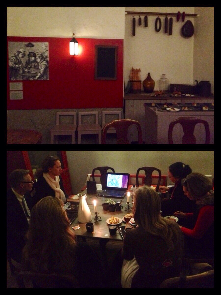 Resultatet blev att Slussens bibliotek samarbetade med Damm Förlag på så sätt att de lät biblioteket sälja billiga böcker till de cirkeldeltagare som ville köpa istället för att låna och därefter var förlaget representerat på själva läsecirkelträffen. Källarstugan heter ett rum i Stadsmuseet där krogen Södra stadshuskällaren fanns från 1680 till 1849, om jag förstått saken rätt. Museet har återskapat miljön som den såg ut under den tid då madam Jöransson drev krogen, mellan 1743 och 1754, och det får man väl säga är nära nog när man väljer en lokal att ha läsecirkel i om en bok som utspelar sig på 1790-talet i Gamla stan och på Södermalm.