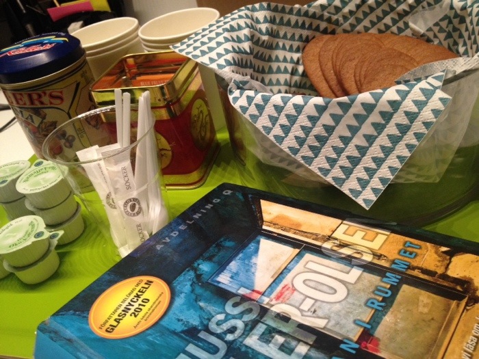 Någon timme innan kvällens litterära salong skulle börja ställde jag i ordning den traditionella gröna fikabrickan i Sturebibblans minimala arbetsrum och funderade på hur många gånger jag hittills gjort det i bibliotekets drygt fyraåriga historia.