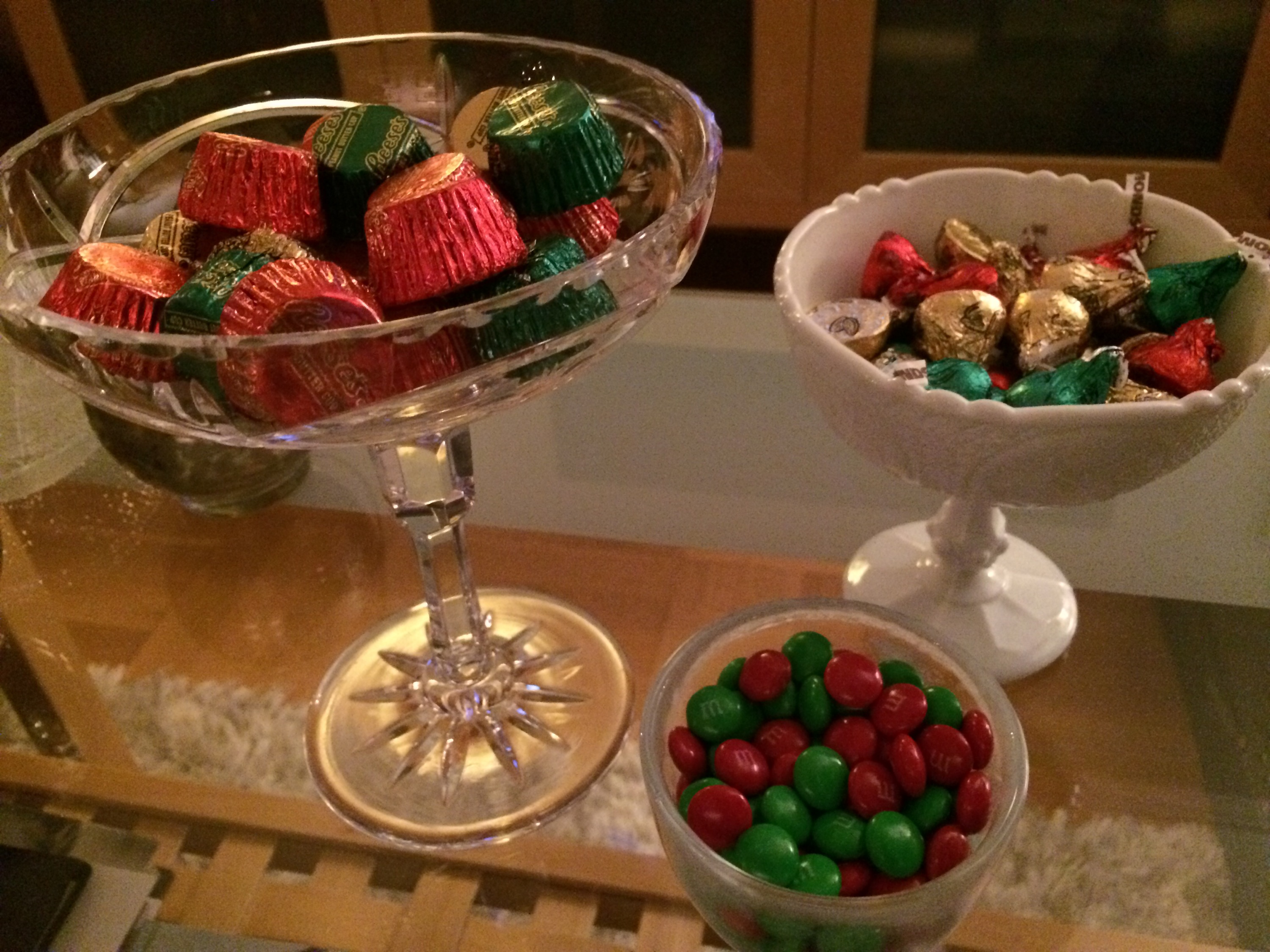 Varför vi har laddat med amerikanskt godis i julfärger här hemma hos föräldrarna? För att sådant såldes ut för halva priset i New York? Inte bara. Det är nämligen dagen före julafton! Julen som sattes på paus när brorsan med familj fick magsjuka körs nu igång igen!