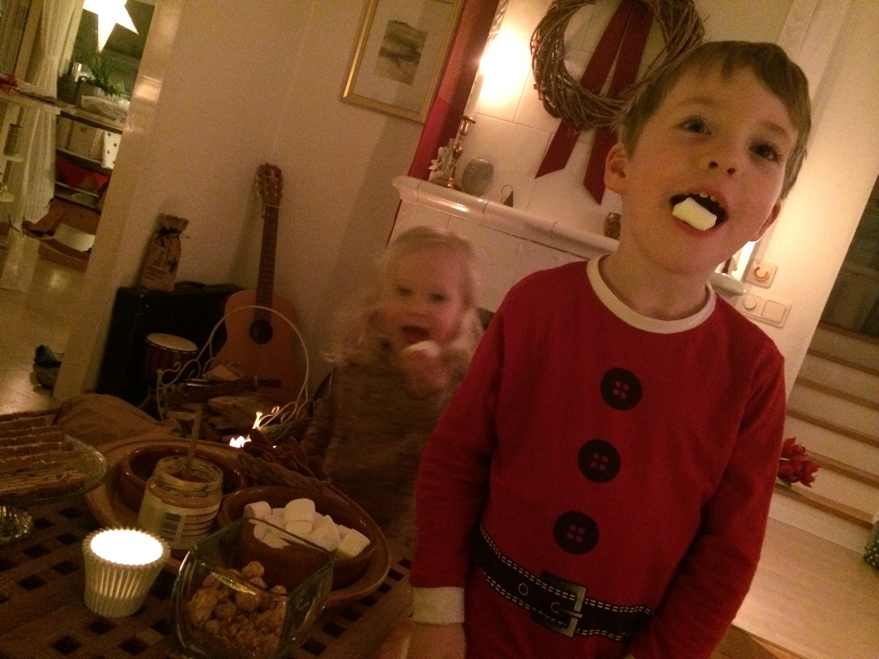 Sedan förra julen är pepparkaks-s’mores en tradition. Vi tänder en brasa, grillar marshmallows och monterar dem med choklad och jordnötssmör mellan mammas tunna och spröda pepparkakor, i valfri ordning och fason.