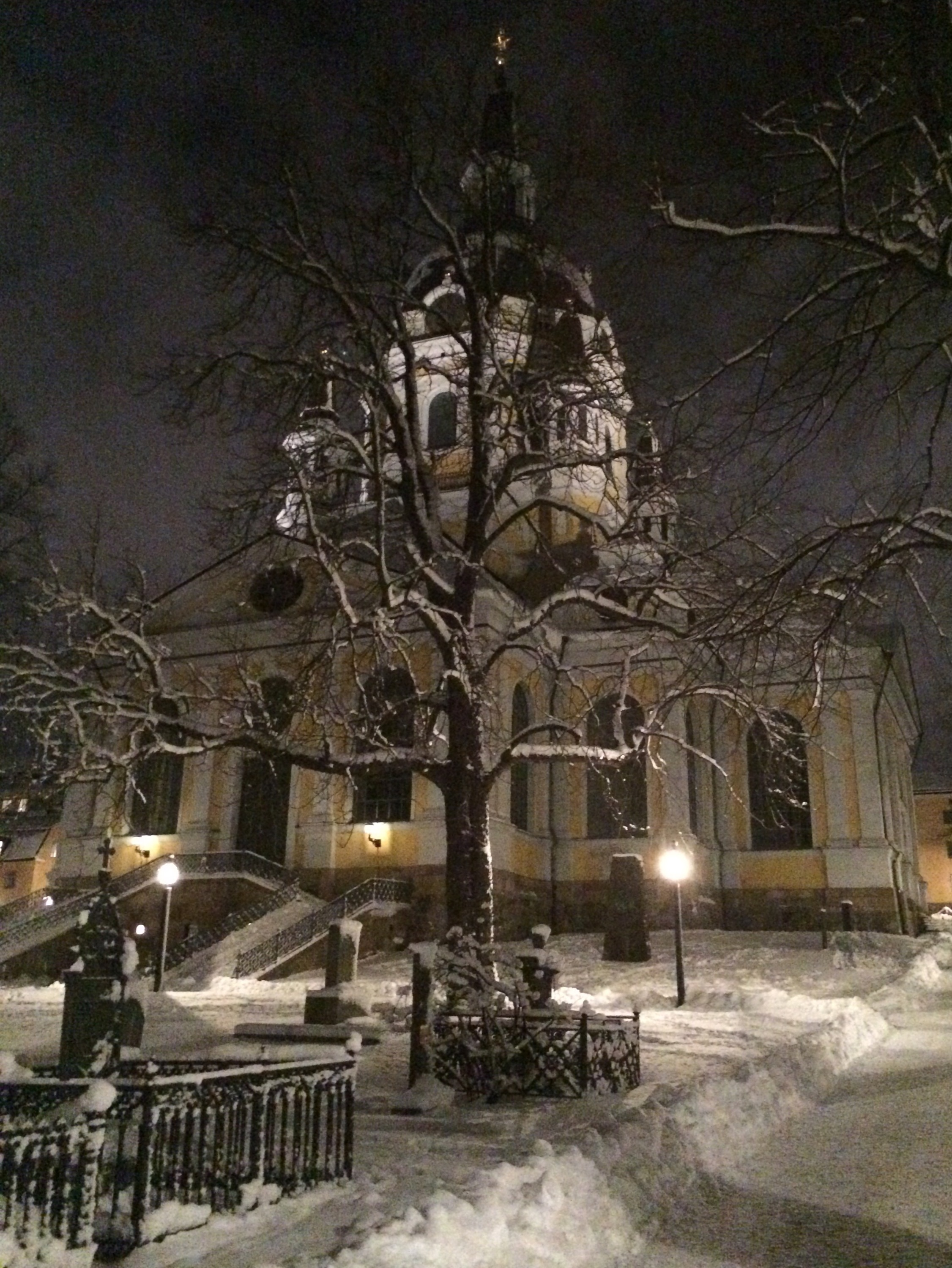 Den traditionella post-film-och-fudge-promenaden var snöig och grann och gick via Katarina kyrkogård i natten.