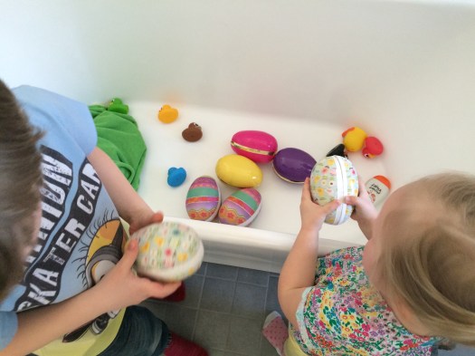 Pappa, barnens farfar, hade arrangerat äggjakt som slutade i badkaret.
