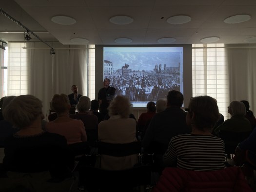 Jag ville gärna gå på ett sådant program och just i dag fanns det utrymme i kalendern och därmed fick jag ta det ämne som råkade bjudas, nämligen ”Stockholms mest festande ungkarl”. Bo Eriksson från Stockholms universitet berättade om 1800-talets Stockholm utifrån Erik af Edholms dagböcker. Han var militär, hovman, teaterdirektör och större delen av sitt liv partajande ungkarl som dansade på mängder av baler. Dessutom levde han under en tid då adeln, som han själv tillhörde, fick en förändrad samhällsposition och ståndsriksdagen slopades. Bland det mest spännande med Erik af Edholms dagböcker, tyckte både föreläsaren och jag själv, är att det framgår hur man samtalade med bekanta och om vad, hur man umgicks ute på sommarnöjet, hur familjerelationer såg ut, alla vardagslivsdetaljer i ett visst stockholmskt samhällsskikt.