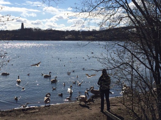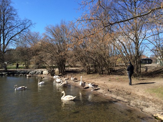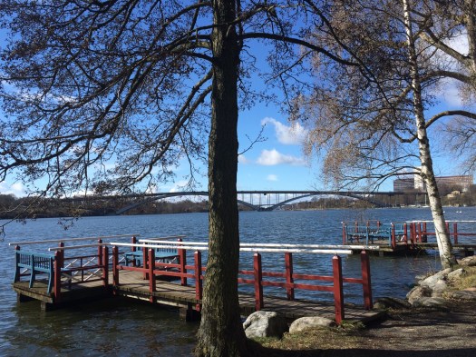 Varför göra det lätt för sig när man istället kan ge sig själv en utmaning? När låneböcker ska tillbaka till biblioteket tar jag förstås i allmänhet med dem till jobbet, vilket är ett eller annat bibliotek, men så här på en ledig dag tyckte jag att det var läge att bocka av ett av de fortfarande ganska många obesökta stadsdelsbiblioteken på min lista. Det blev biblioteket i Gröndal, som ligger på en lagom långpromenads avstånd från Kungsholmen. Så jag packade tre böcker i ryggsäcken (böcker med andra hemmabibliotek än mina egna, lite taskigt hade det varit att låta en Sturebok transporteras i en låda genom stan när jag lätt hade kunnat ta med den till Sturebibblan) och påbörjade promenaden vid Norr Mälarstrand, där det kryllade av solande pensionärer och andra vårtecken. Över Västerbron, över Liljeholmsbron och bort till lilla Gröndals bibliotek, där det var välstädat och knäpptyst. Jag återlämnade böckerna i automaten och satt och laddade mobilen en stund, mittemot en student och bredvid en fritidsläsare, medan jag tjuvlyssnade på en gammal farbror som kom in och berättade för personalen om alla sina krämpor. Han utelämnade inte en enda. Trots den andäktiga lästystnaden bland besökarna, som nog alla lyssnade på den sjukliga farbrorn, man hade liksom inget val, var stämningen varm och gemytlig.