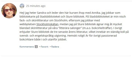 Nu står det att vi är fem personer i den nyskapade gruppen på bokcirklar.se, vilket innebär att kollegan Annika, jag själv och tre av tio kursdeltagare har gått med. Tanken är att allihop ska vara registrerade och kunna kommunicera med varandra under kursen ”Lär dig leda läsecirklar”, som börjar på tisdag och pågår några veckor framåt.