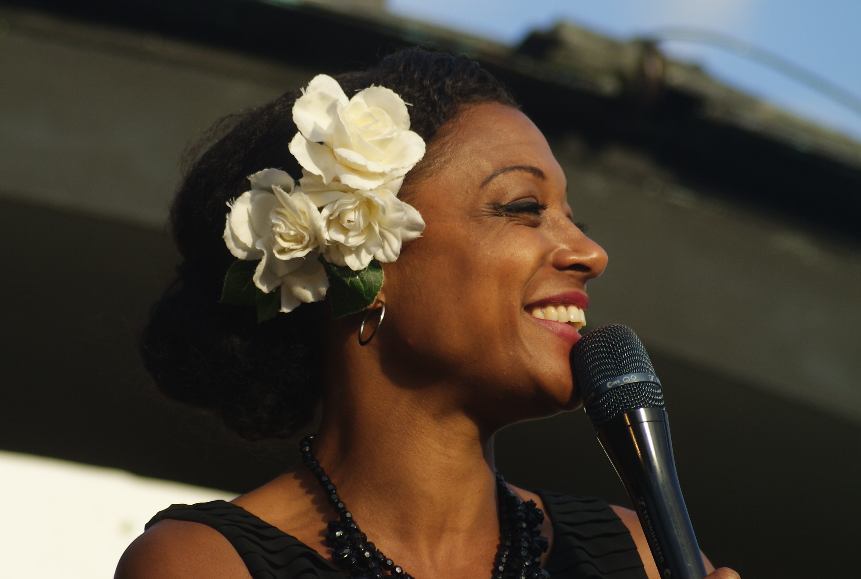 Så där fortsatte det och jag tjuvlyssnade glatt med ögonen i min egen bok. Och så kom några regndroppar. Sedan tätare regn. Det var tre minuter kvar tills kvällens konsert skulle börja. De båda damerna började prata om att de ju faktiskt inte behövde sitta kvar och ”get soaked”, de kunde ju faktiskt gå och äta istället, och efter en stunds velande reste de sig och gick och tog med sig vännerna på de andra platserna. Hade de bara hållit ut några minuter till hade skuren tagit slut, och konserten, som på grund av vädret sköts upp en kvart, hölls i solsken. Anna Sise tolkade Billie Holiday tillsammans med sitt band och berättade om jazzstjärnas oglamourösa bakgrund och hårda liv. Just mina favoritbitar var inte med, men det var en fin konsert.