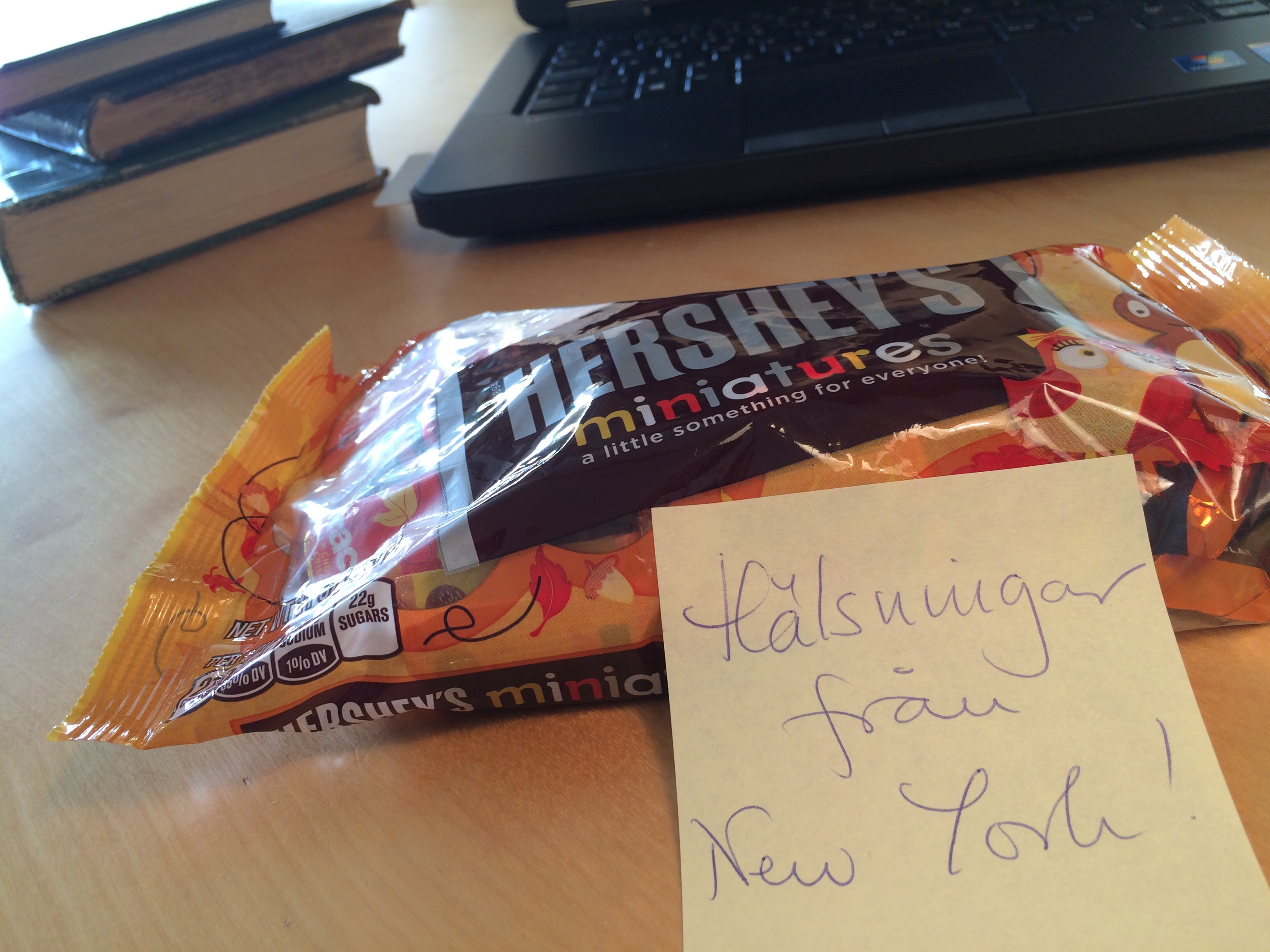 Om jag var avundsjuk på kollegerna som åkte på studieresa till New York? Ja. Men att jag har en egen New York-resa inbokad lindrar. En snabb sammanfattning har jag fått höra, men väntar på att få höra mer om deras besök på bibliotek och andra intressanta ställen. In the mean time – Hershey’s-choklad med höstmotiv!