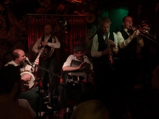 Någon som trodde att jag nöjde mig med ungersk violin- och celloduo i musikväg i fredags? Nej då, samma kväll fanns Sofia, Mireia och jag i den galna trängseln på Stampen och hörde Stockholm Stompers, ett slags högljudd och underhållande korsning mellan klezmer och Aristocats och den enda punkt i jazzfestivalprogrammet jag hade chans att ta del av i år.