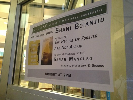 För knappt tre år sedan, 3 juli 2013, min födelsedag, ändrades kvällsplanerna på grund av oförutsedda omständigheter från middag på The Little Owl till litterärt program i bokhandeln McNally Jackson på Prince Street i Nolita på Manhattan. Eftersom jag hade varit på McNally Jackson-program under tidigare New York-vistelser visste jag att det var ett ganska säkert kort, så det faktum att jag inte hade en aning om vem Shani Boianjiu, kvällens gästande författare, var hade ingen betydelse. Men så är jag väl i de flesta sammanhang öppen för att lyssna på vilken författare som helst. Shani Boianjiu visade sig ha skrivit en roman om unga kvinnors militärtjänstgöring i Israel, ett för mig fullständigt främmande sammanhang som det var väldigt intressant att höra henne berätta om – jag beskriver det mycket kortfattat här – även om jag sedan inte prioriterade att skaffa och läsa boken, inte heller när jag såg att den även fanns på svenska, trots att jag blev lite frestad när andra visade intresse för den. The People of Forever Are Not Afraid blev det grammatiskt tveksamma Det eviga folket är inte rädda i svensk översättning, och jag blev faktiskt lite överraskad när jag först hörde talas om översättningen, eftersom jag fått för mig att boken var rätt smal, men tydligen finns den numera på omkring 20 språk.