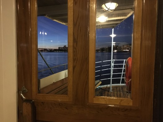 Nu har jag premiäråkt den nya pendelbåten tvärs över Riddarfjärden! Från bryggan vid Kungsholmstorg över till Söder Mälarstrand. Det är en gammal charmig Djurgårdsfärja som trafikerar linje 85, som den kallas, och med den estetiskt tilltalande utsikten, dessutom, kan jag tänka mig att turen kommer att bli populär både av nytto- och nöjesskäl. Jag hoppas i alla fall det, jag vill verkligen att båtlinjen blir bestående!
