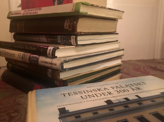 Vad tar man sig till när ens Gamla stan-föredrag ligger tre dygn bort, tre dygn som också är fyllda av andra aktiviteter, och man inser att innevarande lördag är ens bästa chans att läsa in sig och skriva manus? Man mutar sig själv. Först tar man promenaden hemifrån Kungsholmen till jobbet vid Odenplan (dagens motion, pilatespasset jag hade velat gå på skulle ta för mycket tid i anspråk), man packar ryggsäcken full av stockholmshistoriska böcker från ens arbetsrum (de man inte redan hade tagit hem) och sedan gör man några väl valda inköp på Birka-Gott och Cajsa Warg.