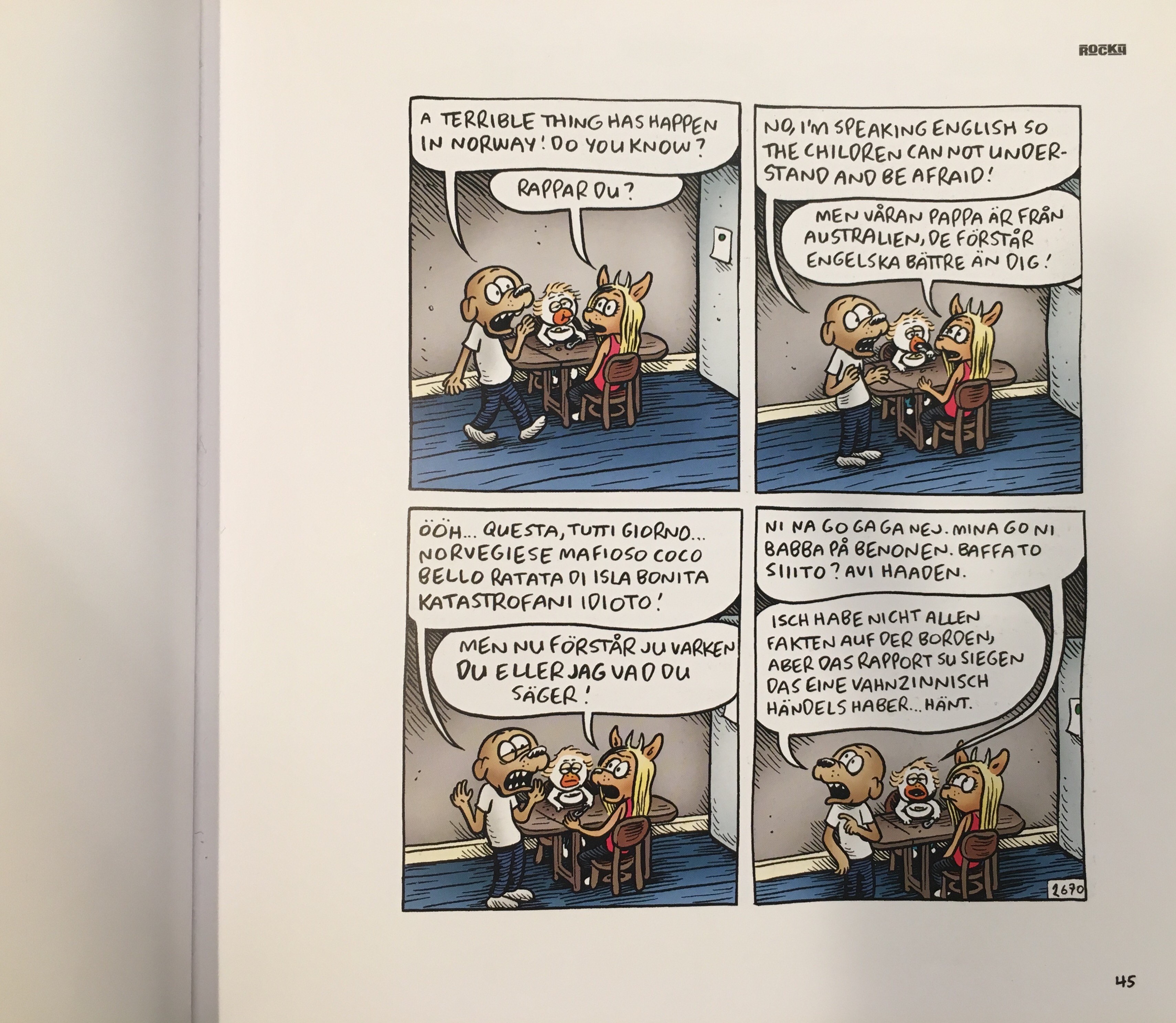 Är ingen Rocky-läsare till vardags, men i dag utrangerade jag vårt äldsta Rocky-album, nummer 22, från Sturebibblan och började bläddra. Jag trodde aldrig att jag någonsin skulle skratta högt åt det som hände på Utøya, men när jag kom till ruta tre på sidan 45 …