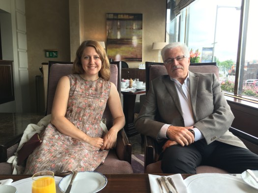 Tre av oss valde kontinental frukost. En av oss (den med kavaj) skulle vara värst och tog en ”God morgon”-frukost, med extra tillbehör. Vi åt och åt och åt.