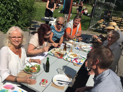 Klart man prioriterar häng med familj och släkt, även om man bara får en timmes varsel. Efter att kallelsen kommit var det bara att hasta iväg till Vinterviken, där diverse mostrar och morbröder och andra familjemedlemmar samlats. Och pappa i solhatt.