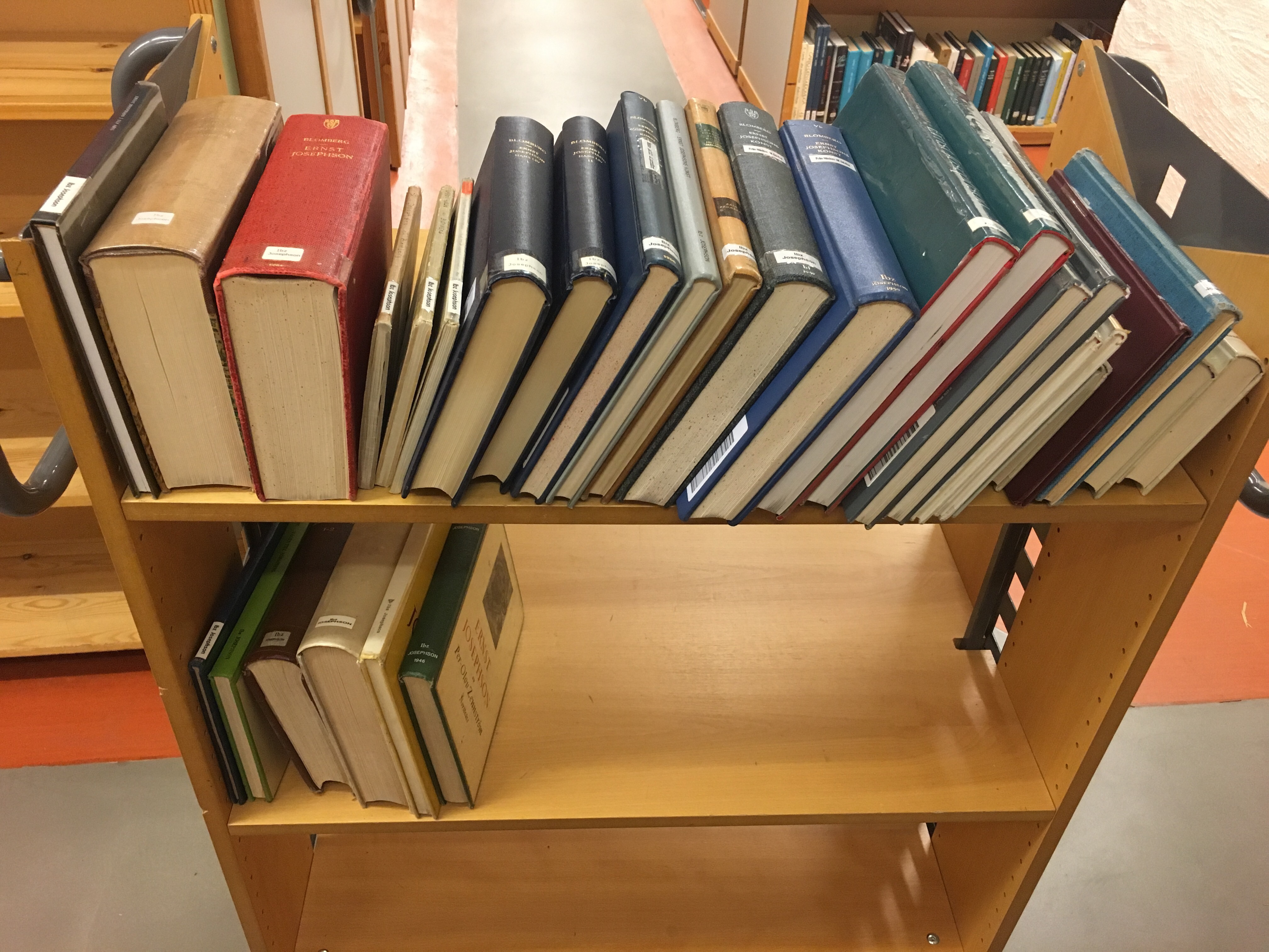 ”Har ni något om Ernst Josephson? Det kanske står i magasinet”, sa en ung man under mitt pass i rotundan. Han hade rätt, alla böcker om Ernst Josephson utom en fanns i magasinet. Jag lastade över hela sortimentet på en vagn – här ses även en del dubletter, men ändå – och körde upp den i hissen till Rotundan där ynglingen spärrade upp ögonen på vid gavel och munnen från öra till öra. Ibland är det lätt att överträffa folks förväntningar.