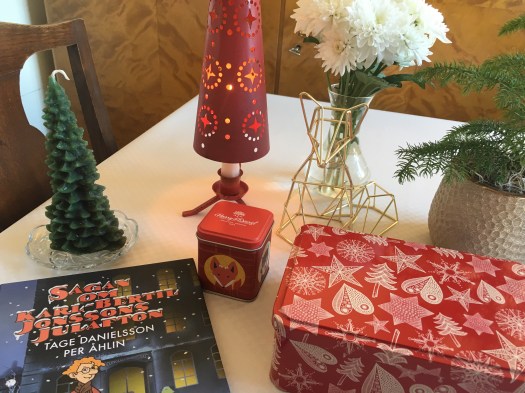 Både Lena och jag bidrog till ett julpyntsbord, för stämningens skull.