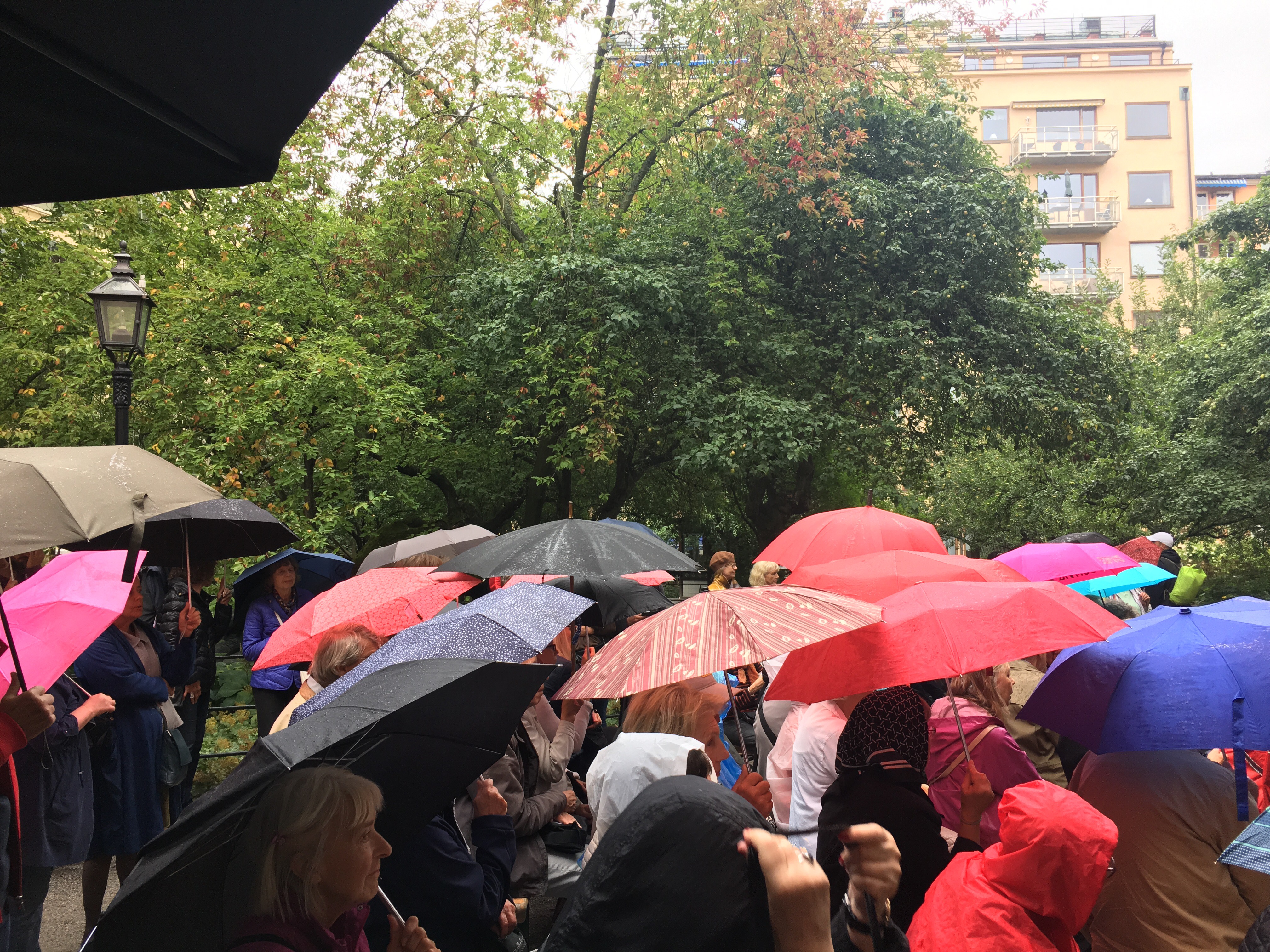 Man kan ju tänka sig att regnväder innebär att bara de mest angelägna kommer till Centralbadets park för att lyssna på Stadsbibliotekets litterära programkavalkad, och i så fall har vi många angelägna kulturkonsumenter i vår stad. Jag begränsade mig till att lyssna under ett litet program, ”Paris i litteraturen/litteraturen i Paris”, som bland annat handlade om försvunna intellektuella sammanhang som det är så lätt att romantisera kring, som de caféer, salonger och hotell som frekventerades av tidens författare för hundra år sedan eller mer.