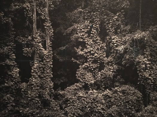 Jag ser att Svenska Dagbladet recenserar ”Transitions”, tre bildserier av Helene Schmitz på Fotografiska, i uppskattande ordalag. När jag var där för tre veckor sedan och betade av de aktuella utställningarna var den min favorit, i synnerhet bilderna som visar den extremt snabbväxande växten som kallas kudzu. Från Fotografiskas hemsida: ”Schmitz väljer att skildra en av världens mest invasiva och aggressiva växtarter som introducerades i USA redan 1876, ironiskt nog som en välmenande gåva från Japan till USA för att fira landets 100-årsjubileum. Kudzun beundrades först för sin fantastiska vitalitet och växtkraft. En beundran som snart förbyttes till skräckslagen häpnad över växtens framfart i landets sydöstra delar. Som ett slags terroristisk löpeld kan denna växt sprida sig med hastighet av 30 centimeter på 24 timmar, det ryktas att närboende måste hålla sina fönster stängda för att den inte ska tränga in i husen och kväva allt i sin väg.”