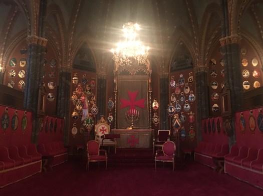 Jag kan inte påstå att jag numera vet allt om Frimurarordern, tvärtom, hemlighetsmakeriet består, däremot var det både intressant att höra själva palatsets historia och gå runt i lokalerna där frimurare rört sig de senaste 140 åren. Rummet ovan, som används i ceremoniella sammanhang, var det enda vi fick fotografera i. Minst sagt fantasieggande.