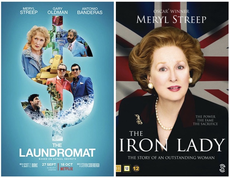 Först såg vi ”The Laundromat”, om läckan av Panamadokumenten 2016, en lektion i det globala ekonomiska fiffel som pågår runtomkring oss. Meryl Streep spelar en lite småvimsig dam som drabbas av en ekonomisk förlust på grund av mygel inom och långt bortom ett försäkringsbolag, vilket hon bestämmer sig för att gå till botten med, och utöver ramberättelsen visas tablåer från olika delar av världen där mer mygel sker. Ciceroner och föreläsare genom det komplexa fifflet är knösarna Mossack och Fonseca – spelade av Gary Oldman och Antonio Banderas – som tillsammans bildade toppen av Panamapyramiden. Löst based on a true story, med andra ord.