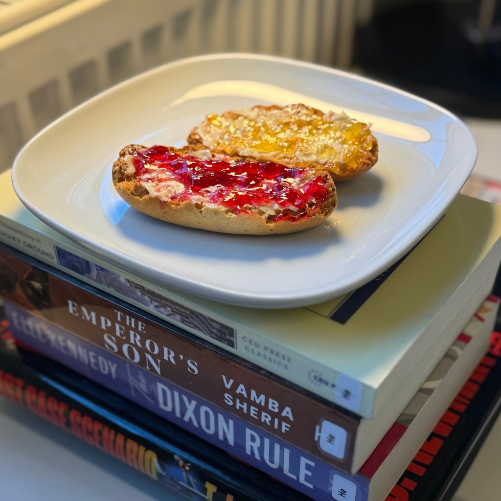 När vi biblioteksboksinköpare med flera flyttade in här i Magasin 5 i Frihamnen för drygt två år sedan var den fria tillgången till kardemummaskorpor, smör och marmelad arbetsdagarnas bästa förmån, men den regelbundna påfyllningen har fallerat. Under en längre tid har vi bara haft de tristare fullkornsskorporna på hyllan i köket, och häromveckan såg jag att det allmänna smörpaketet hade bäst före-datum någonstans på försommaren och de stadigt tre, fyra marmeladsorterna alla tagit slut. Så jag företog expeditionen till den stora ICA-butiken en kvart bort här i hamnlandskapet – köpte Bregott, apelsinmarmelad, hallonmarmelad, körsbärsmarmelad – och en kollega gjorde i samma veva en rejäl kardemummaskorpbeställning.