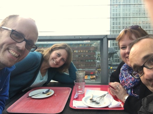 Så småningom kom vi fram till värdshuset, och medan vi åt dagens lunch vid deras bästa bord – det med mest bäst utsikt mot glipan som visade vattnet och en flikig strandkant – kom solen fram. Vi hann med en kort solig promenad kring Gruvbryggan …