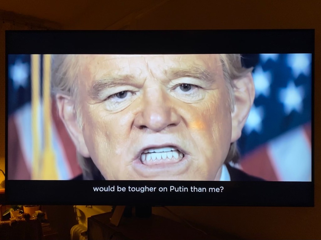 Den andra mindre välsmakande ingrediensen är vissa överdrivna personporträtt, med Trump som det mest extrema exemplet. Visst, han pratar ju så där, skrytsamt och med sina egna associationskedjor, som kan ta samtalet – eller monologen – vart som helst, för att inte tala om vanan att nämna sig själv i tredje person med jämna mellanrum. Det är faktiskt svårt att bedöma om hans repliker är tillskruvade eller ej. Men när man väljer att under den beryktade middagen för två i Vita huset visa Donald Trump hängande över bordet medan han glufsar i sig sin glass samtidigt som ”Jim” sitter beskedligt mittemot med händerna i knät och inte rör sin efterrätt – då har man gjort historien partisk genom parodi. Och det vill jag hävda även om Trump råkar vara en glufsig glassätare i verkliga livet.