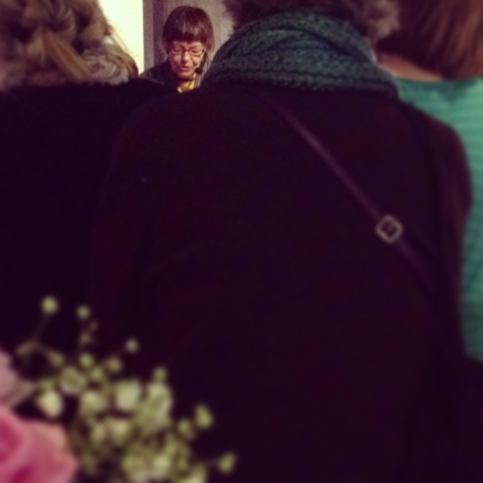 Vem som vill sitta på ett fönsterlöst bibliotek en vacker majkväll och höra poesi? Några, faktiskt, och de fattade ett bra beslut. Andreas Åberg (min kollega Nikes man) höll först en presentation av Ann Smiths poesi och sedan läste och berättade Ann, ett lagom långt, fint program. Hon sålde alla böcker hon tagit med sig och flera stannade kvar och pratade en bra stund.