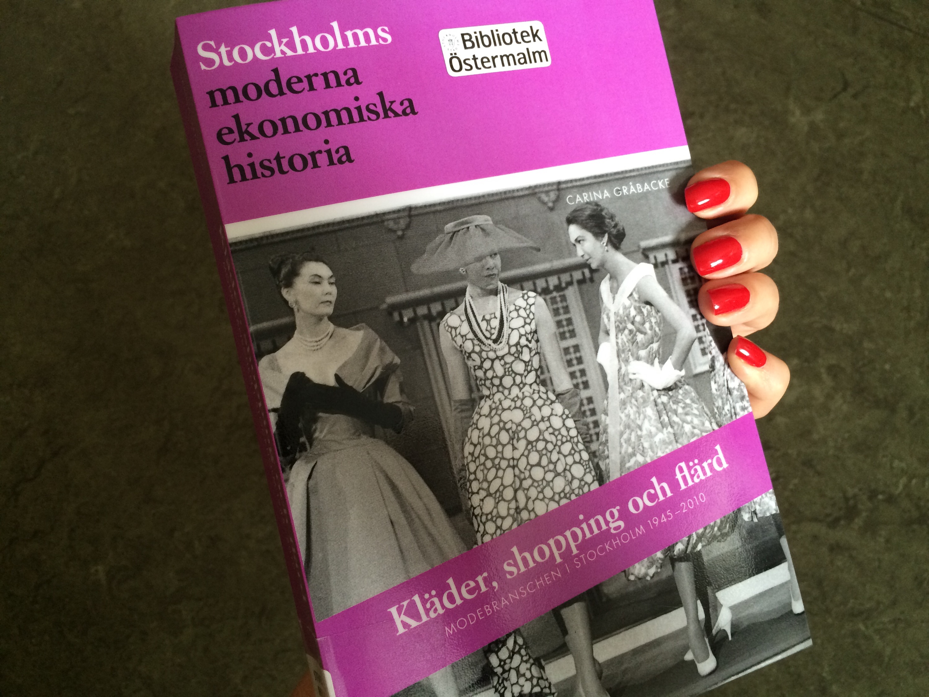 Nämen nu har det väl ändå blivit fel, mail om att en reserverad bok med titeln Kläder, shopping och flärd finns att hämta, vem har lyckats göra den reservationen på mitt lånekort? Jaha, jag går väl till reservationshyllan och tittar på den. Jaså, den nya stockholmshistoriska boken om modebranschen! Ja, hrrm, den har ju jag reserverat.