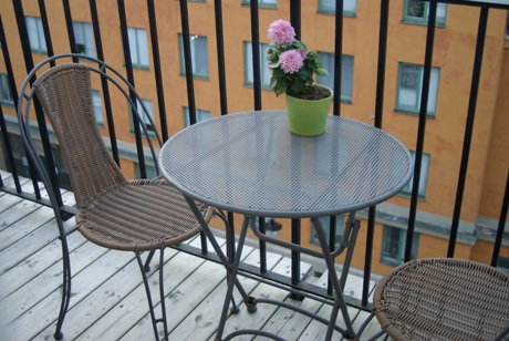I morse ringde min mor och sa att hon tänkte åka och köpa blommor på Blomsterlandet i Bromma och undrade om jag ville följa med. Det var ett perfekt erbjudande. Jag älskar min balkong men saknar gröna fingrar och insikt i att växter och utomhusmiljöer över huvud taget inte sköter sig själva, vilket gör att jag varken sköter växterna ordentligt eller tar hand om dem och uteprylarna när kylan och snön kommer. Till råga på allt har det under en period stått en byggnadsställning på min balkong, och ingen brydde sig om att städa undan spikar och plåtbitar och annat skräp som ramlade ner under byggandet, och jag har inte haft tiden och motivationen att börja röja. Men nu blev det alltså läge. Jag köpte säkert dubbelt så många växter som mamma, runt tjugofem, tror jag, plus jord, lecakulor och lite annat, det kostade hur mycket som helst och var inte helt lätt att få in i bilen, men nu finns alltihop på balkongen.