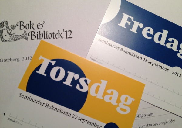 Nog för att jag gladde mig åt att få hålla två små föredrag på Bokmässan (eller mest åt att få stå med i programmet), men det var väldigt skönt när det var gjort. Det första skulle hållas på Biblioteksscenen, och inför det var jag bekymrad över att usb-minnet eller PowerPoint-formatet inte skulle funka, att jag skulle över- eller underskrida mina exakt utmätta tio minuter och att det inte skulle komma något folk. Och förstås att jag i ren nervositet skulle säga konstiga saker utan att märka något. Att hålla föredrag tycker jag annars kan vara riktigt roligt, men då vill jag helst inte ha så här många osäkra faktorer. Men allt gick bra, sa i alla fall kollegan Anna-Stina som lyssnade. Jag visade Delning – i form av skärmdumpar i PowerPoint-presentation, alltså, vågade inte lita på uppkopplingen – och pratade om hur man går kursen och hur biblioteken kan engagera sig. Två stycken kom fram och ställde frågor efteråt. Sådant är kul.