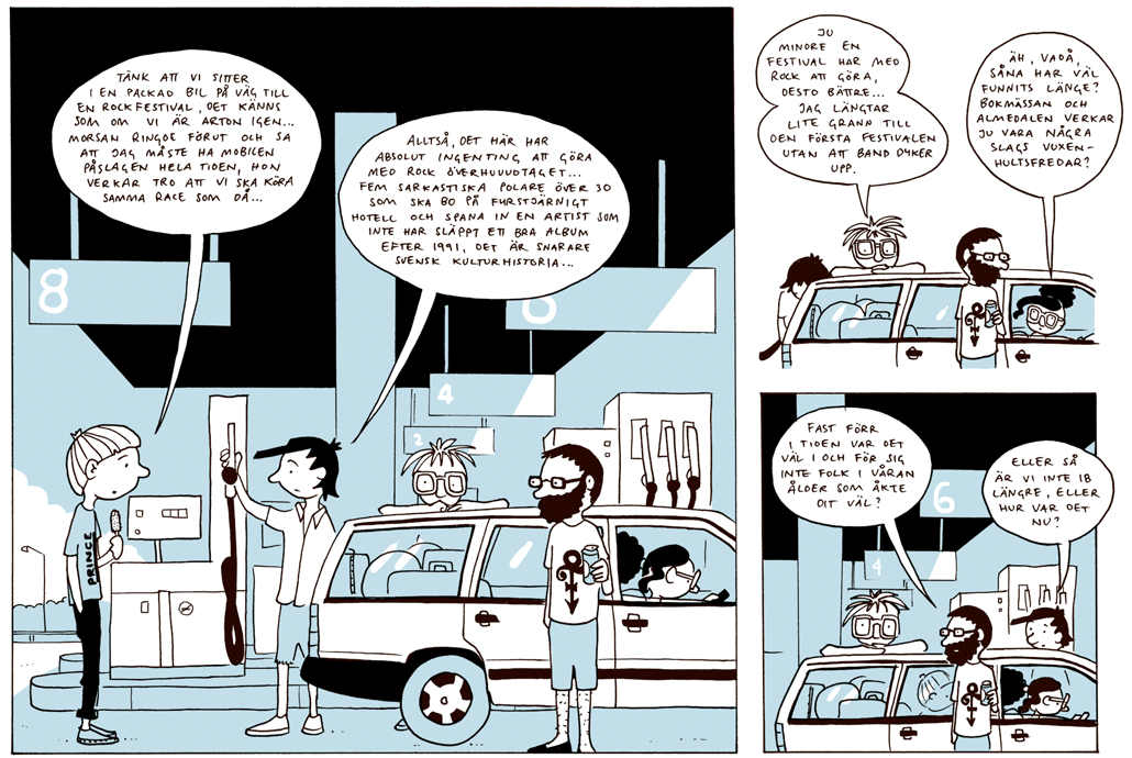 Själv var jag alltiallo under kvällen, fixade lite bild och ljud, möblerade och vaktade dörren (”Ska du på kvällens program? Jaha, välkommen!” ”Ska du på kvällens program? Nähä, ja, biblioteket är tyvärr stängt och programmet är fullsatt …”, i bästa Stureplansmanér). Efter programmet var det mingel med tilltugg och jag tog på mig att äta extra mycket brie för åtgångens skull och prata New York med kollegan Salomon och var inte till någon nytta alls, men kunde inte förmå mig att gå hem. Jag har saknat det där stället så mycket! När besökarna droppade av fick alla en med biblioteksmått mätt lyxig presentpåse med en roman, en novell, en anteckningsbok, en rabattkupong från Pocketshop, vykort, bokmässeprogram och lite godis. Tror jag, vi i personalen fick inga. Hade programmet varit förra veckan hade jag räknats som besökare. Typiskt.