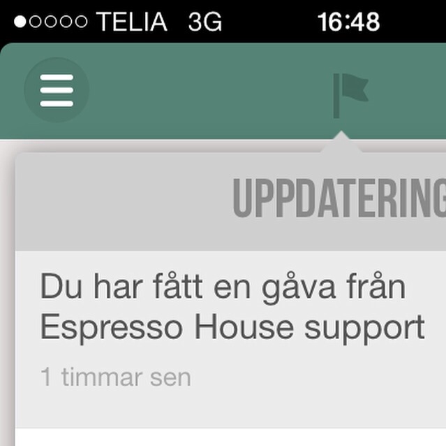 ”Hej Espresso House appsupport! Jag fick just ett erbjudande om en gratis Frapino vid registrering av betalkort i appen, men efter registreringen var erbjudandet borta.”