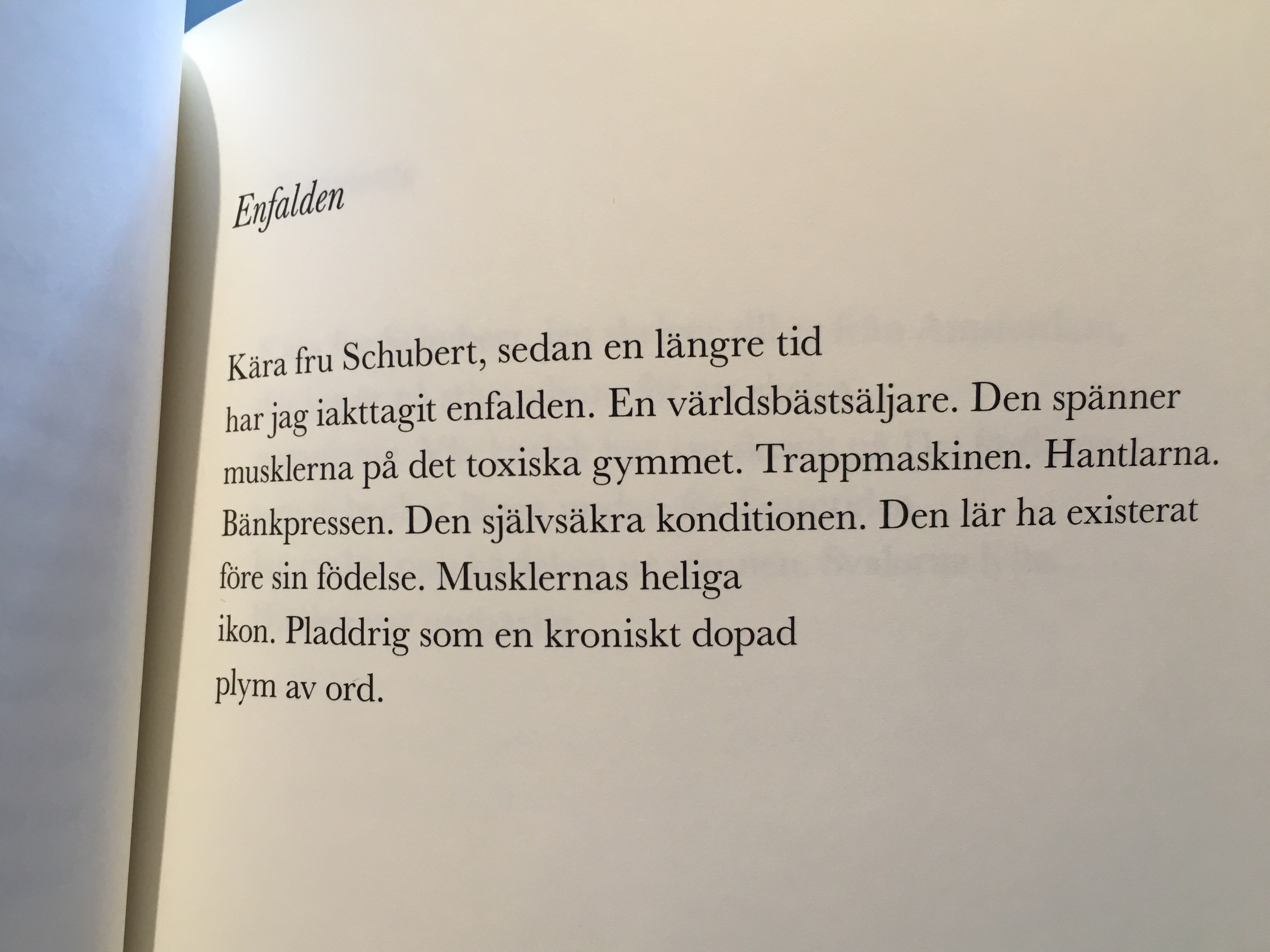 När jag tog tunnelbanan hem var jag uppfylld av alla intryck och så glad att jag hade åkt ut till Tensta och fått lyssna på dessa briljanta människor, kloka, verbala och kvicka i tanken, och eftersom jag har lyckan att jobba på ett bibliotek med ett bra poesibestånd kunde jag inom kort få tag på ett exemplar av Jag matar kriget med dem jag älskar, dikter av Rasha Alqasim i svensk översättning.