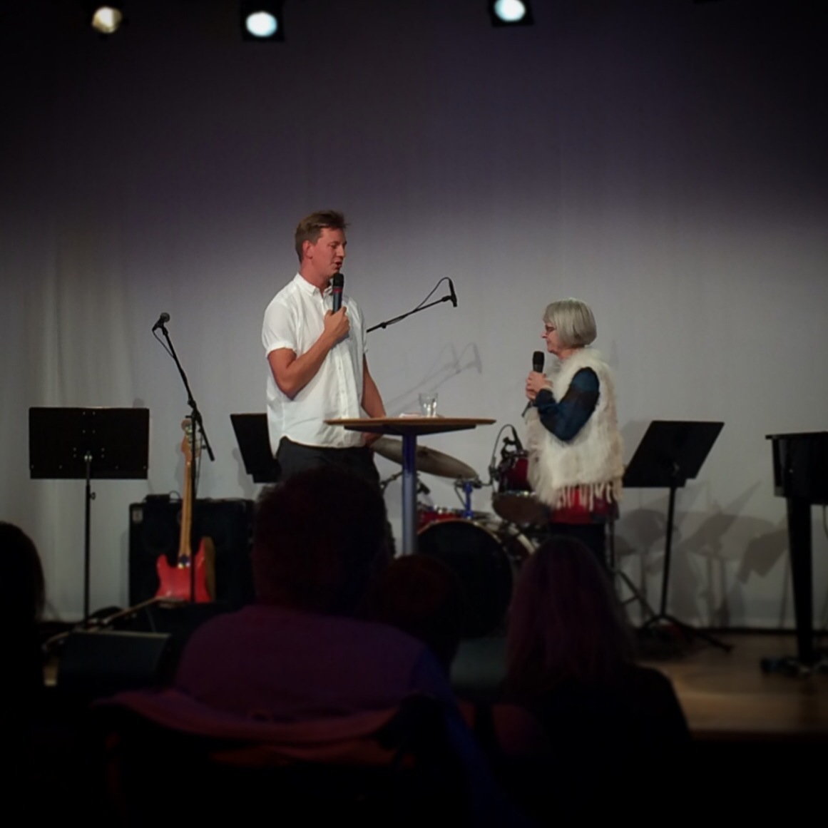 Men det som satte tonen för gudstjänsten, åtminstone för mig, var avtackningen av och intervjun med Samuel Hector, musikpastorn som ses sjunga i förgrunden på bilden ovan. Det är en sådan där högbegåvad person som syns och hörs i musiksammanhang på alla möjliga håll, men här är summan av kardemumman: