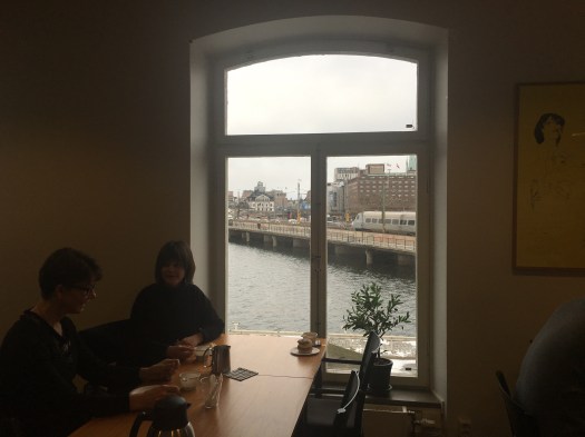 Själv uppskattar jag den alldeles vanliga läsecirkelformen enormt, då några personer sitter kring ett bord och pratar om en bok. Men det har jag varit med om så många gånger att jag tappat räkningen sedan länge. Den här kvällen, däremot, Slussens biblioteks allra första kvällsprogram, glömmer jag inte i första taget.