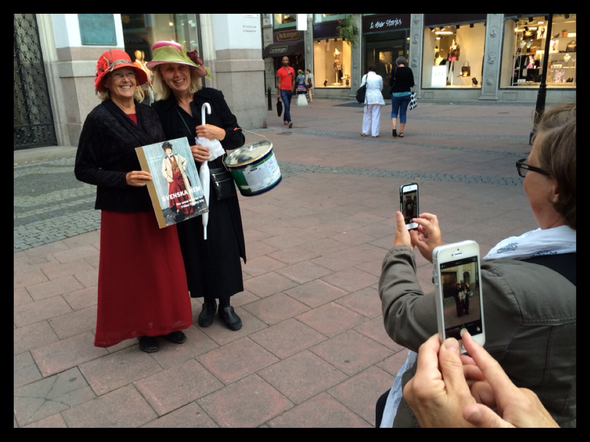 Om vandringen: Ledd av Eva Kaijser och Monika Björk som skrivit boken Svenska hem – en passionerad affär eller, som den heter som nyutgiven, Svenska hem – den sanna historien om fröken Frimans krig. Start och slut vid Stureplan.