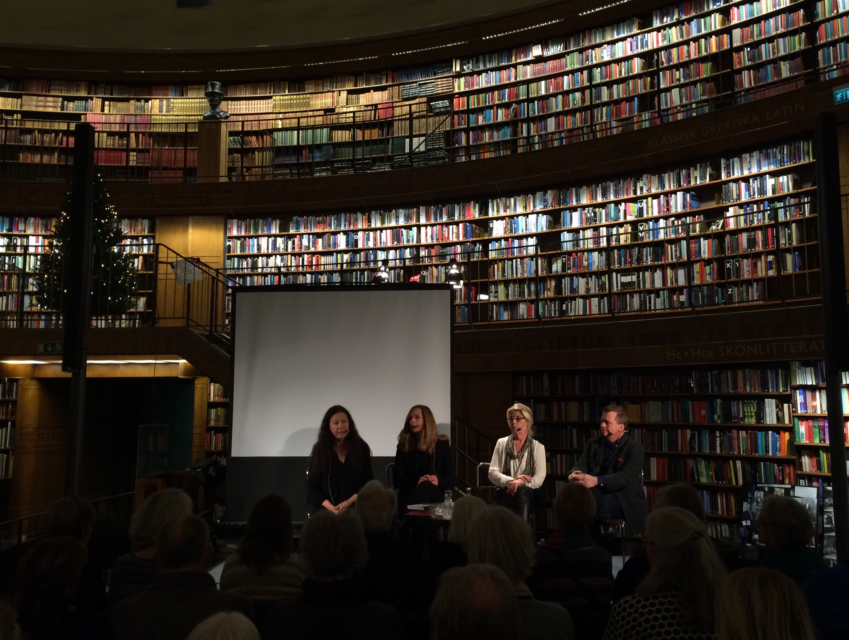 Kommentarer och reflektioner: Monika Björk är min kollega Nikes mamma, som jag har träffat lite då och då på Sturebibblan. Och med på vandringen var min egen mamma. Och när gruppen stod och lyssnade vid stoppet i Birger Jarlspassagen kom Nikes och min kollega Salomon förbiångande, säkert efter att ha stängt Sturebibblan för dagen. Stockholm är så litet, så litet.
