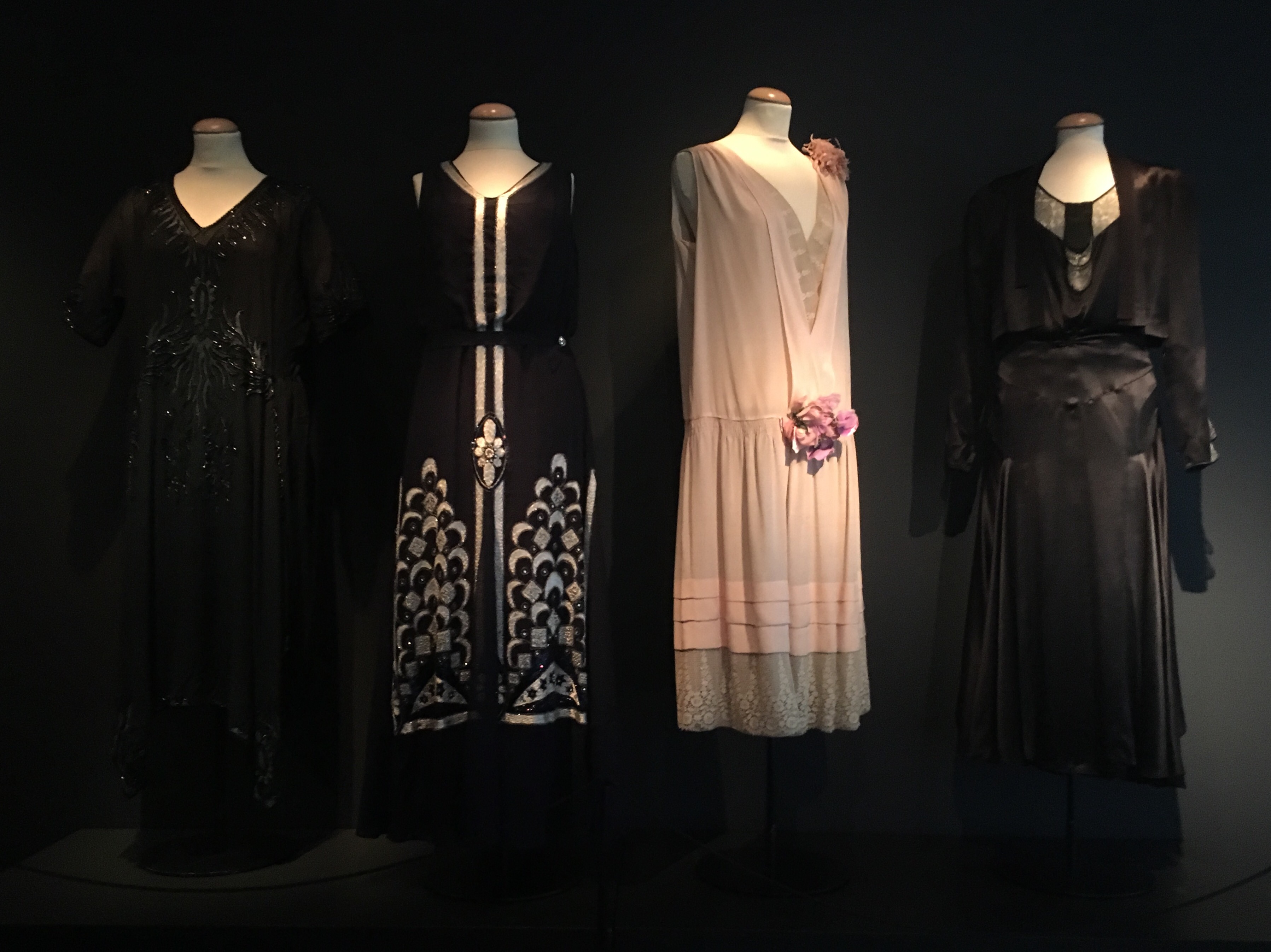 Efter gudstjänsten i Korskyrkan sprang – bokstavligen – Sofia och jag iväg för att hinna till Dansmuseet och veckans visning av utställningen ”Noir & Blanc – den svarta vågen i 1920-talets Paris”. 13.00 på söndagar kan man bli vallad i lokalerna av en guide som berättar om bilderna och utställningsföremålen, som var av mycket blandad art. Det var foton, reklam, afrikanska masker, statyetter, kläder, filmklipp, varav vissa med ljud, alltihop i en vackert ljussatt underjordisk lokal.